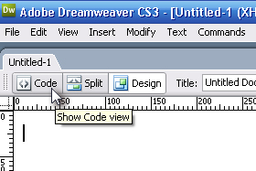 Kliknite na zavihek Code, da odprete kodni način urejanja strani.