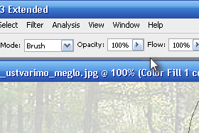 Mode nastavite na Brush, Opacity in Flow pa na 100%.