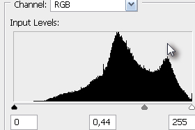 Kliknite na gumb Adjustment Layer v oknu z layerji in izberite Levels. Prepišite podatke z moje slike.