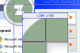Zraven lahko vidimo tudi povečano sliko, kar nam precej olajša točno izbiranje želene površine zaslona, katero mislimo zajeti. Za zajem slike pritisnemo desni miškin gumb, potegnemo po zaslonu, da označimo želeno površino, ter spustimo miškin gumb. |