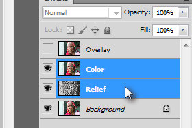 Držite tipko Ctrl in označite layerja Color in Relief.