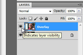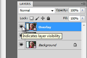Kliknite na ikono, ki predstavlja vidljivost layerja (glej sliko), da boste layer Overlay ponovno prikazali.