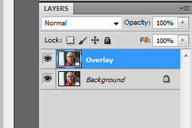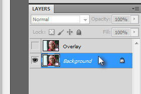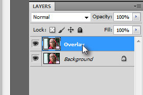 Sedaj kliknite dvakrat hitro na novi layer in ga preimenujte v Overlay.
