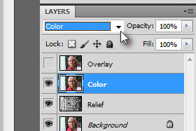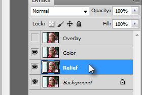 Potem pa enega imenujte Color in drugega (ki je pod njem) Relief (glej sliko). Layer Relief naj bo označen. |