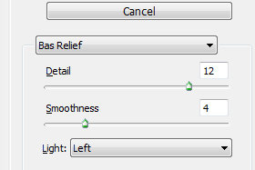 Kliknite zgoraj na Filter, Sketch in izberite Bas Relief...