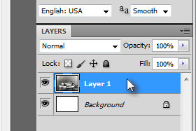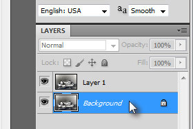 Pritisnite tipki Alt + Del, da zapolnete layer z belo barvo. Potem pa označite prej dupliciran layer (glej sliko). |