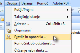 Odprite Outlook in nato kliknite na Orodja in izberite Pravila in opozorila ...