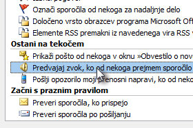 Spodaj v polju Od vpišite e-poštni naslov, za katerega želite, da vam Outlook predvaja zvok, ko bo prispel.