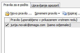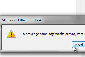 Outlook vas bo verjetno opozoril, da je to pravilo odjemalske narave, zato bo moral program biti aktiven, da bo opravilo delovalo.
