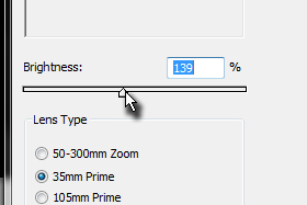 Izberite Filter, Render, Lens Flare in nastavite v novem oknu, ki se odpre, tako kot je na sliki. |