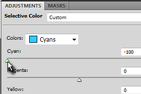 Colors nastavite na Cyans in Cyan na -100. |