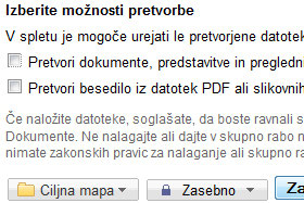 Pretvori dokumente, predstavitve in preglednice v ustrezne oblike zapisa Google Dokumentov in Pretvori besedilo iz datotek PDF ali slikovnih datotek v dokumente v obliki zapisa Google Dokumentov naj ne bo označeno.