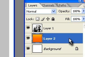 Označite sedaj Layer 2, ki ste ga prej ustvarili (pobarvan). |