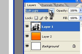 Izberite sedaj Layer, kjer se nahaja fotografija in v izbirniku izberite efekt Soft Light.