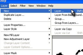 Kliknite na Layer, New in izberite Layer... Potrdite na gumb OK, ko vas vpraša za ime novega layerja. |