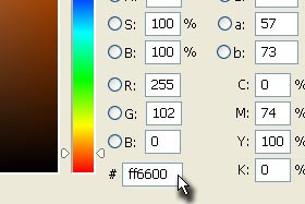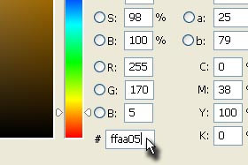 V polje # vpišite vrednost ffaa05 in potrdite na gumb OK. |