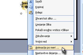 Spet kliknite na avtobus z desnim miškinim gumbom in izberite Animacija po meri...
