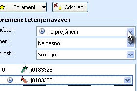 V polju Začetek določite S prejšnjim, Smer naj bo Z leve in Hitrost naj bo Srednja. |