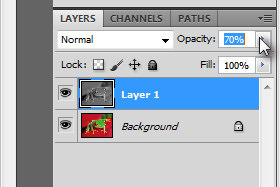 Potem pa dupliciranemu layerju nastavite Opacity na 70% (glej sliko). |