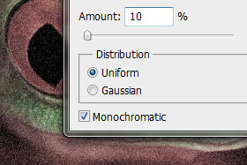 Kliknite zgoraj na Filter, Noise in izberite Add Noise...