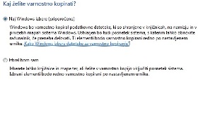 Izberite Izbral bom sam, v kolikor želite sami izbrati kaj vse se naj varnostno kopira.