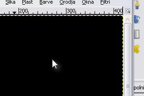 Najprej odpremo novo datoteko 420×300 in jo pobarvamo črno.