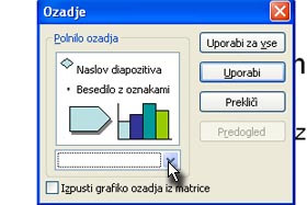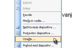 Kliknite na diapozitiv (kjer ni teksta) z desnim miškinim gumbom in izberite Ozadje ...