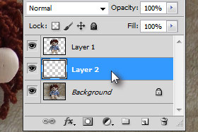 Sedaj pa novi layer premaknite med prvim in izrezanim layerjem (glej sliko).
