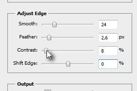 Potem pa v polju Adjust Edge Smooth, Feather in Contrast določite po želji.