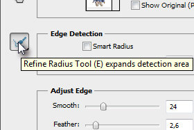 Kliknite na čopič Refine Radius Tool (glej sliko) ... |