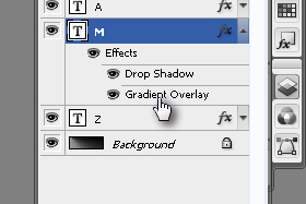 Kliknite na layer druge črke na vaši sliki, in izberite Gradient Overlay.