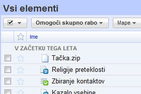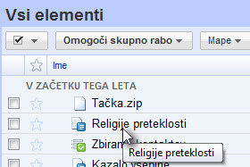 Označite Vsi elementi, da se vam prikažejo vsi dokumenti. |
