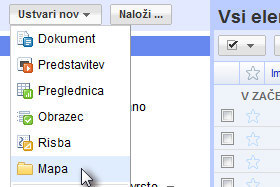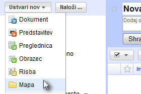 Kliknite ponovno na Ustvari nov in izberite Mapa.