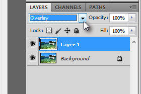 Novemu layerju nastavite senčenje na Overlay (glej sliko).