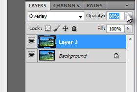 Istemu layerju zmanjšajte še vednost Opacity, kolikor vam vaše oko želi (glej sliko).