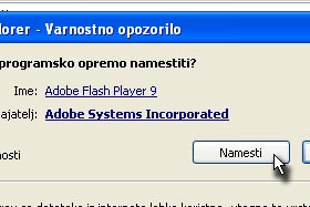 Če sje to sporočilo namenjeno namestitvi Adobe Flash Player, potem potrdite na gumb Namesti in počakajte nekaj trenutkov...
