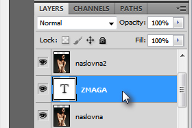 Layer z napisom naj bo med dvema layerjema na katerima sta fotografiji.