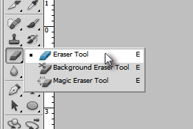 Izberite layer, ki leži nad layer-jem z napisom in z Eraser Tool pobrišite črnino okoli glave.