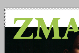Izberite layer, ki je pod layerjem z napisom. In označite celoten del od vrha fotografije do vrha letaka.