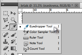Izberite orodje Eyedropper Tool in izberite barvo, ki je čisto na vrhu Fotogtafije.