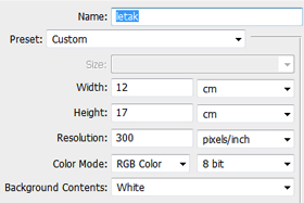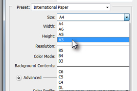Če želite oblikovati v standardnih velikostih, izberite nov dokumet in kliknite Preset, nato izberite Size in določite velikost.