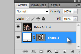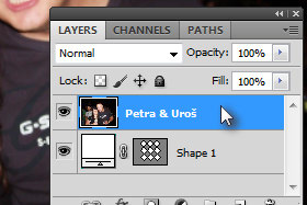 Sedaj se vam je layer z fotografijo skril za layerjem z obliko.