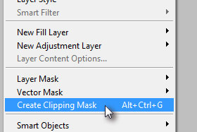 Kliknite zgoraj na Layer in izberite Create Clipping Mask.