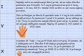 Pod opisom so pravila seštevanja in odštevanja rimskih števil.