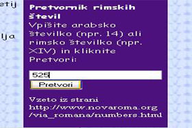Lahko pa tudi rimsko število spremenimo v arabsko. Npr.DXXV=525. |