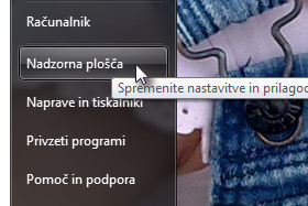 ... in nato izberite Nadzorna plošča.