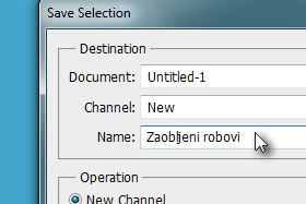 V oknu kanalov držite tipko Ctrl in kliknite na predogledno sličico prej ustvarjenega kanala (glej sliko).