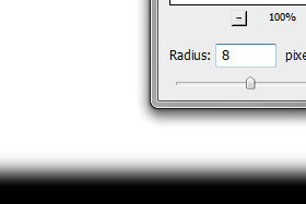 V novem oknu Radius določite 8 pixels in kliknite na gumb OK. Robovi prej zapolnjene bodo postali zamegljeni. |