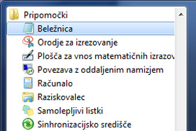 Kliknite na Start/Vsi programi/Pripomočki/Beležnica.