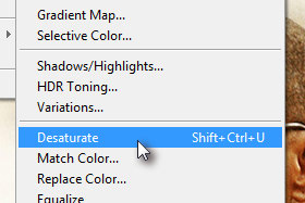 ![]() Kliknite zgoraj na Image, Adjustments in izberite Desaturate.